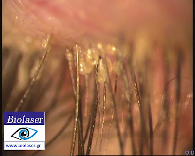 Εκεί διαπιστώθηκε αφενός η ύπαρξη του παρασιτικού ακάρεως Demodex, έκδηλη βλεφαρίτιδα καθώς και η Δυσλειτουργία των Μεϊβομιανών Αδένων.